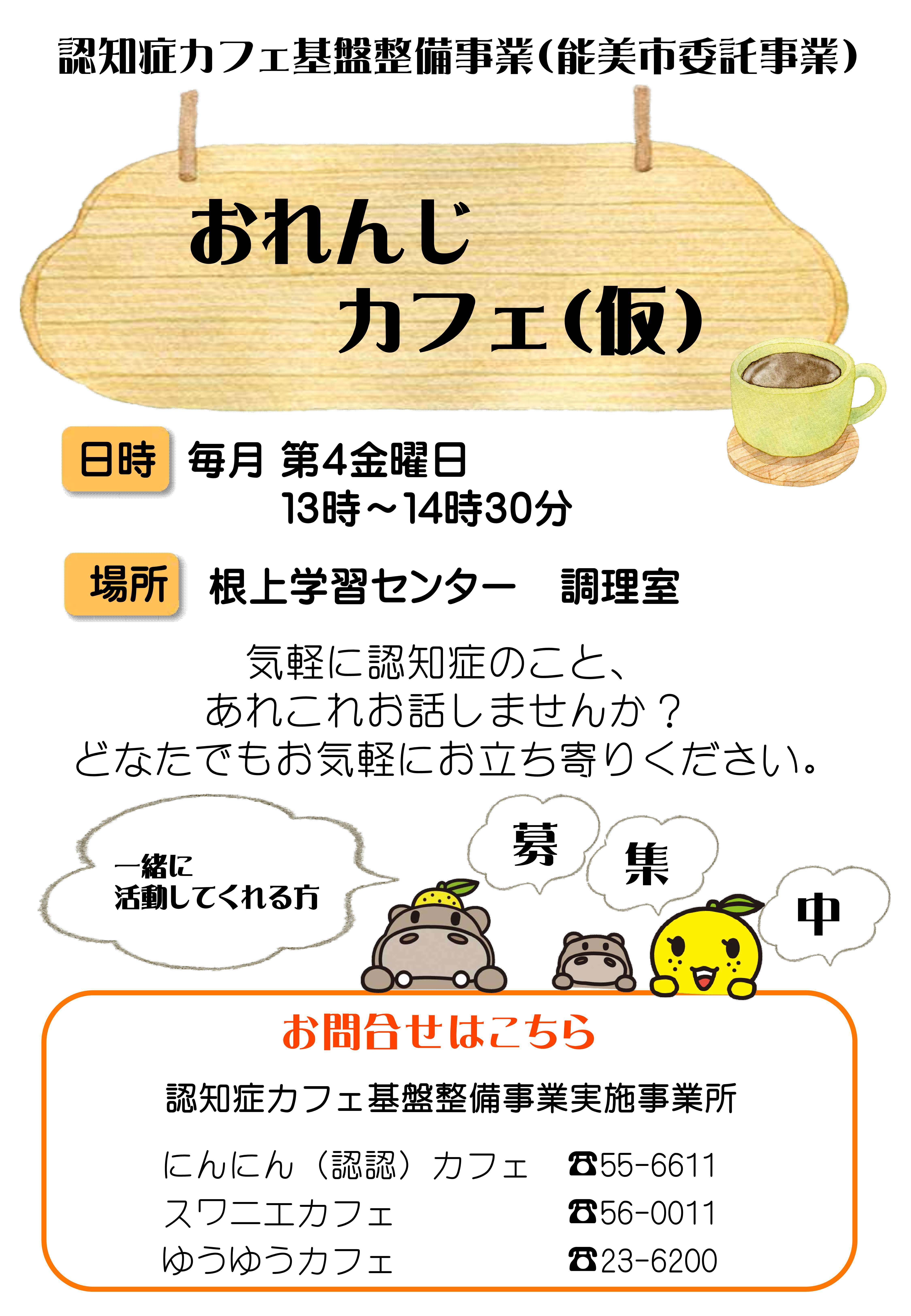 | ゆうゆうカフェ (有)オレンジ・ケア ☎ 23-6200(グループホーム ゆうゆう能美) |