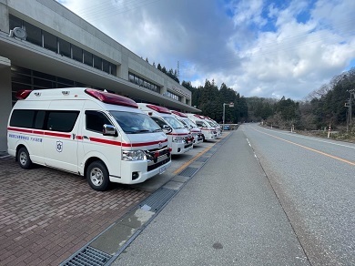 令和6年1月1日に発生し、甚大な被害をもたらした能登半島地震で、能美市消防本部は石川県消防広域応援隊として、「津波・大規模風水害対策車」「救急車」「後方支援車」「防災学習車」が出動し、1月18日までに救助隊員30名、救急隊員21名を派遣しました。