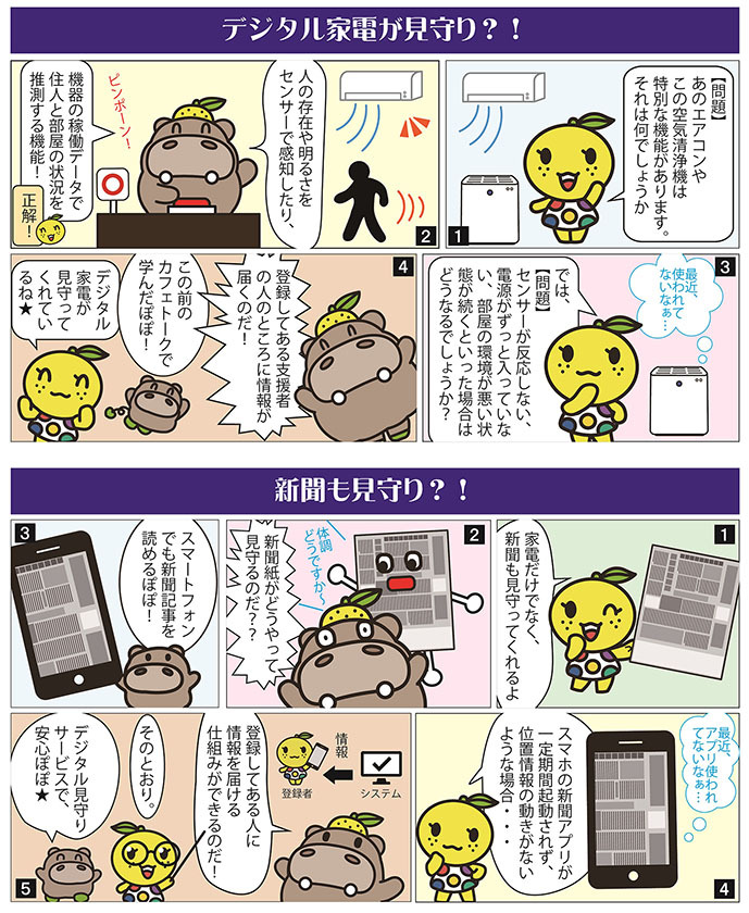 地元新聞アプリの利用状況による見守りや、災害時の位置情報連携もできるようにします。