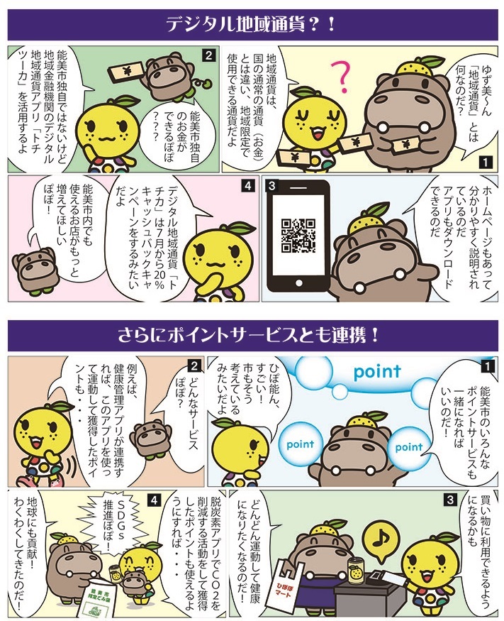地域通貨を導入し、ポイントサービスの統一を目指します。