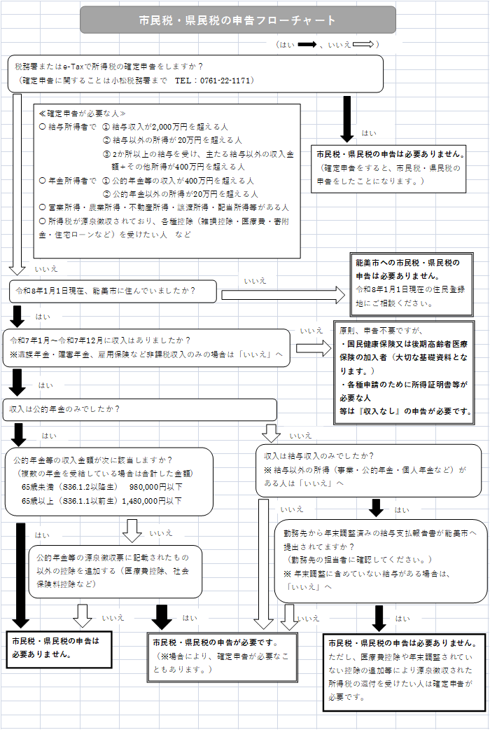 以下のフローチャートに沿って、市民税・県民税の申告が必要かどうか確認してください。