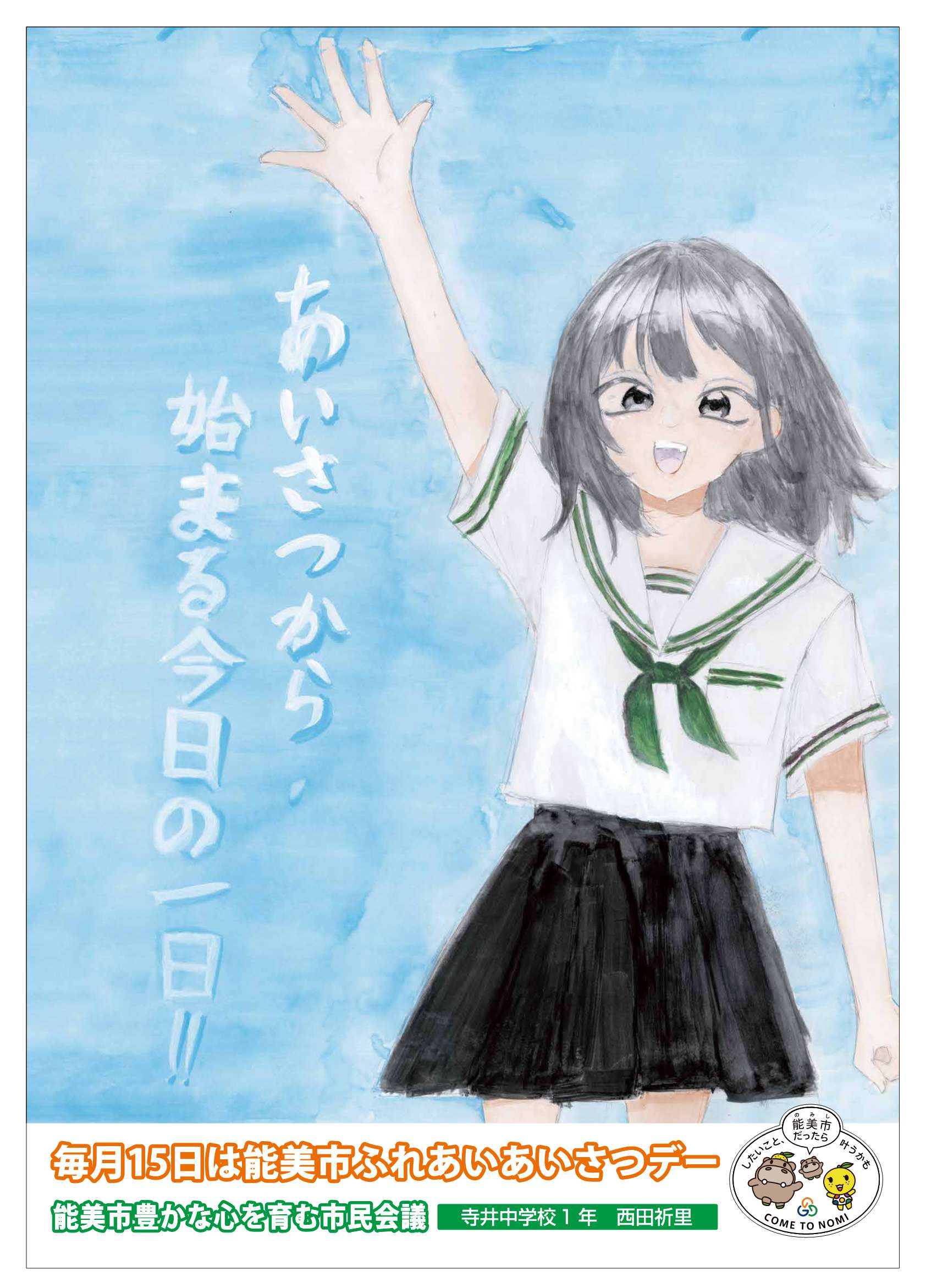「能美市豊かな心を育む市民会議」は、毎月15日を「ふれあいあいさつデー」とし、子ども達へのあいさつ運動に取り組みます。