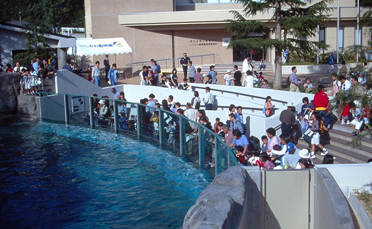 いしかわ動物園は、基本コンセプトを「楽しく、遊べ、学べる動物園」、3つのやさしさ(「動物にやさしい」、「環境にやさしい」、「人にやさしい」)として、1999年10月9日にオープンしました。園内の動物舎は、自然の地形を活かして植栽や岩や池を配置し、動物たち本来の生息環境に近い環境を再現しています。また、動物が飛び越えられない幅の堀を巡らせる「モート方式」やガラス越しの観察により、従来のコンクリートや鉄格子で仕切った狭い動物舎では見られない動物たちの生態が間近に観察できるような配慮もされている動物園で、高齢者や身体障害者、車椅子などの利用者を考慮し、園路(約1.1km)は、勾配を4%以下にするとともに、階段部分にはスロープが設けられ、屋内観察通路の出入り口は自動ドアで区切られており、2階にあるレストランへもエレベーターで行けるように配慮されています。