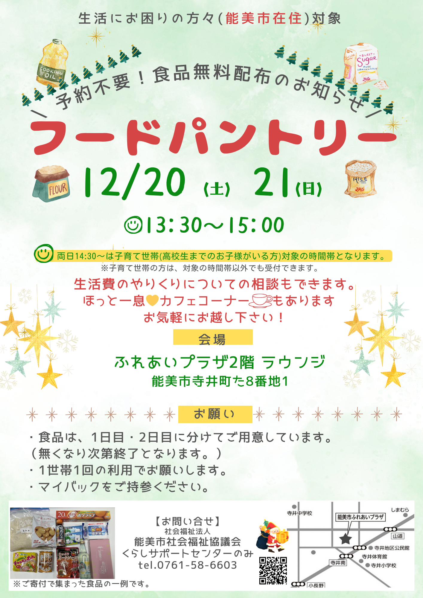 能美市社会福祉協議会でフードパントリーが実施されます。