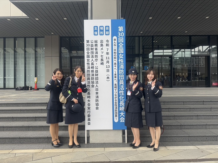 令和7年11月13日(木曜日)長崎県 出島メッセ長崎において開催された、第30回全国女性消防団員活性化長崎大会に能美市消防団女性分団が参加しました。