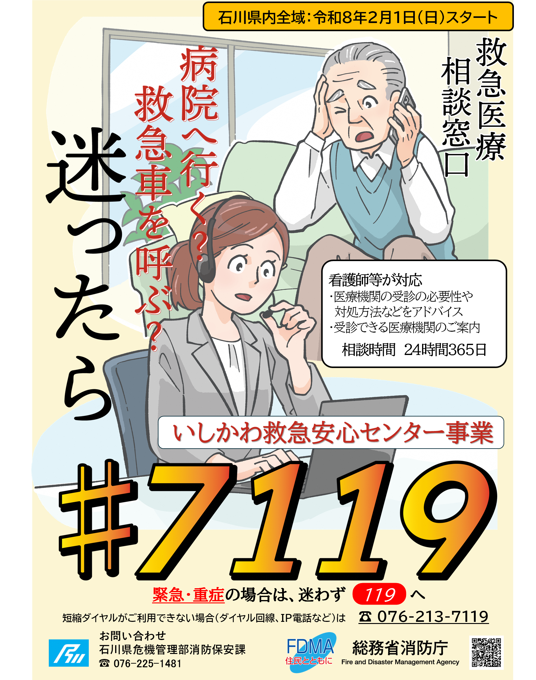 令和8年2月1日(日曜日)より「いしかわ救急安心センター事業 ♯7119」がスタートします。